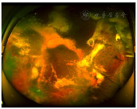 2018年8月24日行左眼全视网膜激光光凝术,2018年11月27行左眼视网膜下液外引流联合冷凝联合玻璃体腔穿刺注药(康柏西普、曲安奈德),术后9个月患儿左眼眼底出现严重的增殖性病变,2019年9月27日行左眼玻璃体切除联合增殖膜剥除联合激光联合硅油注入,2020年3月30日行左眼硅油取出。