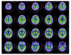 淀粉样蛋白PET成像:11C-PIB显像示大脑皮层PIB浓聚程度增高,以左侧顶枕颞叶更明显,提示淀粉样斑块沉积(图3)。