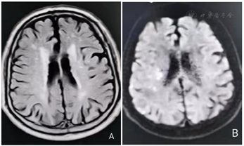 颅脑MRI示双侧侧脑室旁、右侧基底节区及脑干多发梗死灶。