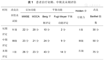 经过3周治疗,患者可经口安全进食,能在家里安全步行,日常生活能力较治疗前提高。