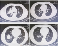 入院后予以抗感染(头孢他啶、莫西沙星、美罗培南等)止咳、平喘等治疗,症状未见明显缓解,于2020年3月21日给予卡瑞利珠单抗(200 mg d1)免疫治疗联合安罗替尼(12 mg qd,服用2周,停1周)口服靶向治疗,至2020年4月10日入院复查时患者咳嗽明显好转,胸闷症状好转,可自行下床行走。因服用安罗替尼出现明显胃肠道反应,患者拒绝继续服用。此后卡瑞利珠单抗(200 mg Q3W)维持至2021年3月,因患者一般情况良好,无咳嗽及胸闷症状,能从事一般体力劳动。后调整为卡瑞利珠单抗(200 mg Q4W)至今