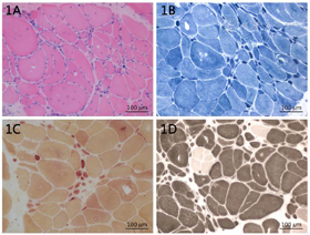 肌肉痉挛是ALS的常见症状[6],患者行走、体格检查用力均能诱发肌肉痉挛,支持ALS的诊断。患者血清肌酸激酶增高,肌肉MRI可见水肿,因此我们进行了肌肉活检,活检结果示神经源性损害骨骼肌病理改变,符合ALS患者肌肉活检特点。而肌酸激酶增高[7]、肌肉水肿[8]在ALS患者中也十分常见。