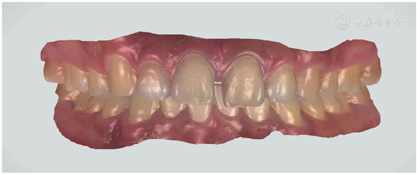 患者,男性,30岁。主诉自觉上前牙间缝隙5年余,影响美观要求诊治。患者自诉10余年前于诊所行正畸治疗,治疗后未佩戴保持器,5年多前发现上前牙区出现散在间隙,近年来间隙无明显改变,现自觉不美观要求修复治疗。既往史:否认"高血压、糖尿病、心脏病"等系统性疾病,否认药物、食物过敏史、传染病史及家族史。