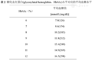 糖化血红蛋白(glycosylated hemoglobin,HbA1c)水平对应的平均血糖水平
