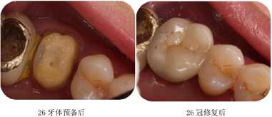 完善的牙周基础治疗可以控制绝大多数的牙周炎症,在重度牙周炎的病例中,也可获得良好的治疗效果[5,6]。本病例中经过12年的治疗,影像学显示牙周状况稳定,但对于后牙区垂直型骨吸收应尽早进行牙周手术治疗;另一方面考虑26烤瓷冠对邻面骨吸收的影响。
