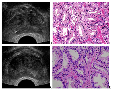 经直肠引导下可疑目标穿刺联合系统穿刺,病理诊断前列腺腺癌,Gleason评分3+3。