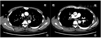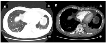 患者男,53岁,因"左胸痛、气促2周"于2020年11月29日入院。患者2周前无明显诱因出现左前胸阵发性隐痛,与呼吸相关,伴轻微活动后气促。胸部CT提示:双下肺炎,纵隔及腋窝稍大淋巴结,双侧胸腔积液及胸膜增厚;外院予抗感染(口服头孢类抗生素)无好转。起病后,患者无发热、咳嗽、咳痰、咯血、盗汗、消瘦等症状。患者无职业相关危险因素接触史,既往无特殊疾病史,不嗜烟酒,未接触放射性毒物。无药物过敏史,家族史、婚育史无特殊。