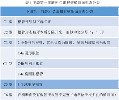 | 下颌第一前磨牙C形根管横断面形态分类 | |