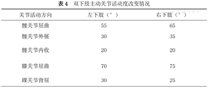 | 关节活动方向 | 左下肢(°) | 右下肢(°) |