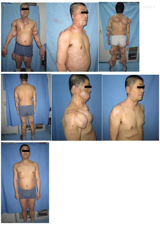 患者,男性,34岁,被汽油火焰烧伤面部、躯干、四肢,面部颈部躯干四肢遗留大面积瘢痕。