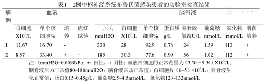 2例中枢神经系统布鲁氏菌感染患者的实验室检查结果