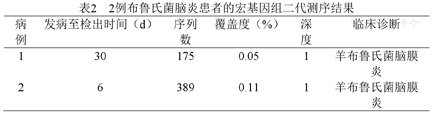 2例布鲁氏菌脑炎患者的宏基因组二代测序结果