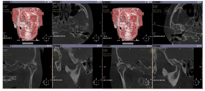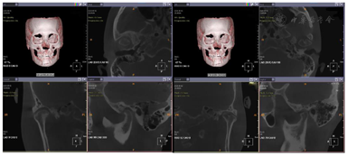 垫三月后:双侧颞下颌关节及肌肉未诉不适,肌肉触诊上颌结节疼痛减轻,翼内肌疼痛消失。CBCT示:戴用