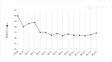患者,男,25岁,因"发热伴呼吸困难4 d"入住四川省人民医院EICU。患者4 d前无明显诱因出现高热伴呼吸困难、乏力等症状,最高体温40.0℃(图1)。既往体质较好。无明显其他部位感染史,无长期服用糖皮质激素、免疫抑制药史。