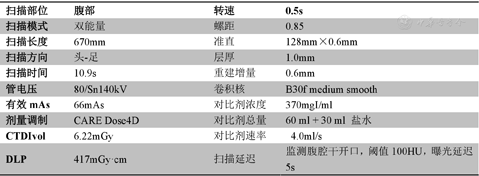 | DLP | 417mGy·cm | 扫描延迟 | 监测腹腔干开口,阈值100HU,曝光延迟5s |
