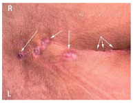 本病急性发作期,症状常见破溃、流脓,易与肛旁脓肿混淆。后者常发生于肛管、直肠周围,局部包块红肿热痛,按压波动感明显,可资鉴别。