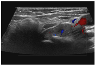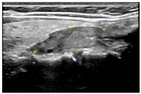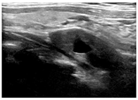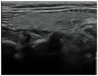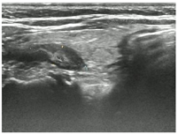 术后复查PTH、血钙及血磷值已恢复至正常水平(表2)。术后3个月复查超声显示甲状旁腺结节缩小至1.6cm×0.7cm×0.6cm,术后6个月复查超声显示甲状旁腺结节已完全吸收(图12,图13)。术后2月患者骨痛已基本缓解。