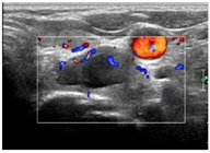 超声引导下左侧甲状腺旁腺腺瘤微波消融术。