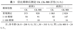 倍比稀释后测定CK、CK-MB活性(U/L)