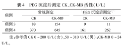 PEG沉淀后测定CK、CK-MB活性(U/L)
