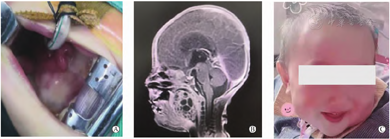 例2在孕晚期彩超发现口腔内肿物,出生后出现呼吸道阻塞危及生命,术后病理提示未成熟畸胎瘤,复查AFP下降不明显。由于大量的药代动力学资料表明新生儿对化疗更容易出现严重并发症,且新生儿药物的相互作用、代谢、清除和毒性都尚不清楚,故未进行化疗,观察至3个月时二次手术扩大了切除范围,1岁时随访,生长发育正常。发生在鼻咽部的畸胎瘤起源于3个多潜能胚层细胞组织[8],1993年国外有1篇类似报道[9]。肿瘤小者可无症状。若肿瘤较大或基底宽者,可致张口呼吸,重度紫绀,甚至窒息死亡。1999年8月国内李红娟等[10]报道2例; 2002年11月鲍晓林[11]报道5例; 2008年7月殷延涛等[12]报道1例; 2010年4月樊春笋等[13]报道1例; 2013年曹波[14]总结3例; 2019年2月孙岗等[15]报道6例,手术后病理结果不明,随访6个月无复发; 2019年9月詹翔等[16]报道1例,病理结果为成熟性,随访12个月无复发。国内新生儿畸胎瘤的临床经验及个案报道中缺乏联合化疗与1~ 3年长期随访资料。