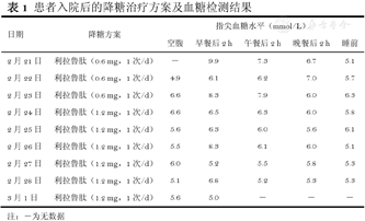 | 2月28日 | 利拉鲁肽(1.2 mg,1次/d) | 5.1 | 6.8 | 5.2 | 5.3 | 5.3 |