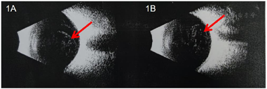 患者,女性,65岁,因"双眼黑影1个月余"于2021年1月20日入院。患者2020年12月无诱因出现双眼泥沙样黑影,否认眼痛、发红、畏光、流泪、视力下降等不适,眼部超声:双眼玻璃体浑浊(图1A、B)。眼底照相提示:双眼周边静脉点状出血和硬性渗出,考虑双眼静脉周围炎,进一步明确病因入院。病程中患者否认眼干、口干、皮疹、脱发、口腔溃疡、关节肿痛、晨僵、双手遇冷变色等不适。