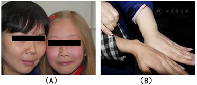 先证者主要表现为畏光、眼球震颤、皮肤及毛发的改变,智力发育正常。父母亲表型正常。