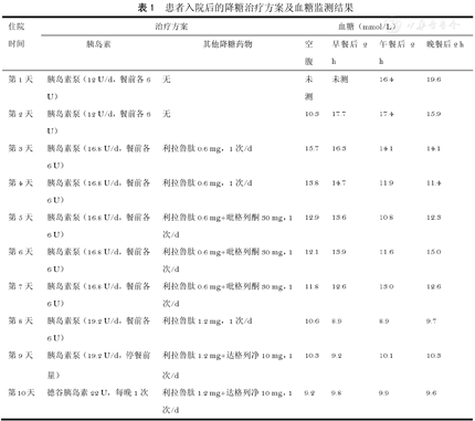 | 住院时间 | 治疗方案 | 血糖(mmol/L) | ||||