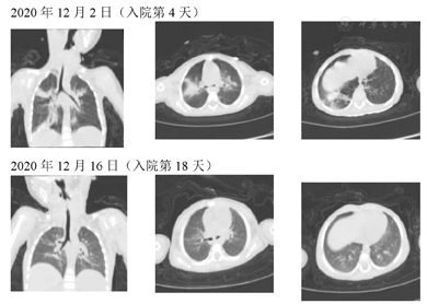 患儿,女性,1岁8个月,急性起病,因发热、咳嗽、喘息、声音嘶哑4 d入院。患者4 d前无明显诱因出现发热,热峰39.8°C,予口服退热药可降至正常,易反复,4次/ d,阵发性犬吠样咳嗽,伴喘息以及声音嘶哑,病初症状较轻,后逐渐加重。