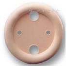 子宫脱垂Ⅱ度重型诊断明确,POP-Q分期Ⅲ期,宫颈水肿明显,嵌顿于阴道外,无法还纳(图1),暴露的宫颈有进一步感染、糜烂风险,遂予硫酸镁湿敷消肿治疗,同时予普罗雌烯和人表皮生长因子外涂促进粘膜愈合治疗。予监测体温正常,感染指标正常,监测血糖80%满意,胎心监护示反应型,无宫缩。四天后宫颈水肿稍好转,采取臀高截石位,石蜡油润滑宫颈后予还纳至阴道内,同时置入中号(直径57 mm)环形带隔膜子宫托(图2)。子宫托置入后,孕妇每日适当下床散步,宫颈未再脱出。孕妇掌握自行取出和置入子宫托方法后,出院休养,观察阴道分泌物情况,每2~3天取出子宫托予清洁。