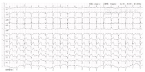 患者,女性,84岁。因"反复胸痛1周,持续加重8 h"于2021年8月17日急诊收治入院。既往无高血压、糖尿病病史。入院查体:血压105/56 mmHg(1 mmHg=0.133 kPa),神清,气略促,对答切题,颈静脉无怒张,双肺呼吸音粗可闻及较多的湿啰音,心率112次/分,律齐,各瓣膜区未闻及病理性杂音,腹平软,肝脾肋下未及,双下肢轻度浮肿;急诊心电图示:急性广泛前壁心肌梗死;胸部CT提示双侧间质性肺水肿可能;实验室检查:肝、肾功能、电解质正常,肌钙蛋白T 4.26 ng/ml,肌酸激酶同工酶188.93 ng/ml, D二聚体1.36 mg/L,PRO-BNP:>35000 ng/L。根据患者病史、心电图及心肌酶学明确诊断为急性ST抬高型心肌梗死,予以嚼服负荷量波立维及阿司匹林、经右桡动脉入路行急诊再灌注治疗;冠脉造影示:前降支次全闭塞,远端TIMI血流0级,于前降支近端植入3.0 mm×18 mm Firebird支架一枚后安返CCU,血压112/82 mmHg,心率112次/min,氧饱和度99%,予以心电及血流动力学监测,阿司匹林、替格瑞洛抗血小板聚集,他汀调脂、稳定斑块,扩管利尿改善心功能等治疗。