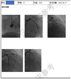 冠脉穿孔或破裂:复读冠脉造影影像,术中未见导丝穿出及造影剂滞留或外渗,最后一帧冠脉造影影像未见心包积液,故不支持介入术中操作导致的急性心包填塞并发症。