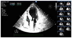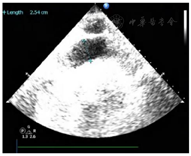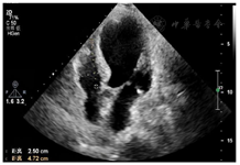 出院前复查心超:左室壁破裂修补术后,左室壁节段性运动异常伴心尖部室壁瘤形成,EF34%,微量心包积液(图7)。