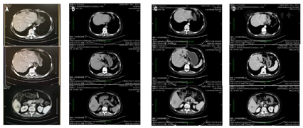 参考CSCO乳腺癌诊治指南,我们推荐患者接受氟维斯群联合CDK4/6抑制剂治疗,但是患者表示经济困难,选择化疗治疗。2019年8月至2020年1月,患者接受了一线解救化疗(白蛋白结合紫杉醇200 mg单周方案)共14次,疗效评价PR。期间行肝脏CT检查,疗效评估SD(Stable Disease)。复查外周血ctDNA检测,PIK3CA等基因的变异率明显下降,疗效评估PR(图1,2019年10月20日,2019年11月29日)。因为疫情,患者1个月余未能继续治疗。2020年2月27日,复查肝脏CT检查时,提示肝脏转移灶增大,且左侧胸壁出现赘生物,局部破溃。临床评估为PD。2020年3月至8月,患者接受二线解救化疗(长春瑞滨50mg 2周方案联合盐酸安罗替尼12mg 3周方案)治疗,复查肝脏CT提示转移灶稳定(图2),复查外周血ctDNA检测,提示变异率下降,疗效评估为PR(图1,2020年4月11日,2020年7月20日)。2020年8月底,患者决定转至外院治疗,又经历了3线治疗,每次治疗的缓解期2~3个月。2021年6月2日,患者再次行外周血ctDNA检测,提示突变率又有所提高,提示病情可能再次进展(图1,2021年6月2日)。此时患者的肝脏CT检查提示病情稳定,且患者并无任何不适,外院医生参考主诉及影像学检查结果,讨论后建议维持原方案治疗。2021年8月11日,患者出现乏力、腹胀等症状,复查外周血ctDNA检查发现,变异率等指标明显升高,例如PIK3CA突变率达35.92%,TP53突变率达35.44%,接近肝脏转移灶组织的变异水平(图1,2021年8月11日),提示癌细胞生长迅速,病情爆发式进展。此时,患者病情急转直下,于8月18日去世。具体治疗过程可见图3。