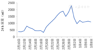 患者入科后予利尿消肿,保胃,抗凝,护肾,预防骨质疏松,调节胃肠功能等对症治疗,严格出入量管理,行骨髓穿刺及肾脏穿刺活检术后诊断"肾病综合征(肾小球轻微病变)"明确,取得患者及家属知情同意后,于2022年2月17日开始给予"甲泼尼龙40 mg、1次/d+他克莫司1.5 mg、2次/d"治疗。