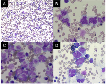 侵袭性NK细胞白血病(aggressive NK cell leukemia,ANKL)是一种相对罕见且侵袭性极强的NK细胞恶性肿瘤,其发病率约占造血淋巴细胞肿瘤的0.1%,ANKL早期诊断困难,临床进程快,最佳有效的治疗方案尚未确定,治疗效果差,病死率极高,临床报道病例亦有限[1,2,3]。现报道一例以发热,全身水肿为首发表现的ANKL 1例,患者有特征性骨髓细胞形态学特点(细胞体积大,核型不规则等),染色体核型为复杂核型。予以P-GEMOX联合沙利度胺获得治疗反应,但持续时间短暂。以此丰富临床医师对ANKL的认识。