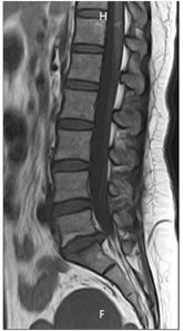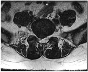 患者,女性,45岁,壮族,个体经商工作,慢性病程,因"反复腰痛3年,加重伴右下肢放射痛半年余"入院。患者3年余前无明显诱因下出现腰痛,呈持续性酸胀痛,程度不重,尚可忍受,活动后加重,休息后可缓解,疼痛程度白天和夜间无明显差异,当时无放射痛及肢体麻木、乏力,无畏寒发热,无间歇性跛行,无大小便障碍,在当地诊所药物口服及中药外敷等保守治疗后症状改善,此后上述症状时有反复发作,经中药外敷等保守治疗后均好转。半年前无明显诱因下觉腰痛加重,伴有右下肢放射痛,弯腰、下蹲及站立时明显,卧床休息可稍减轻,无间歇性跛行,无潮热、盗汗,无夜间疼痛加重,无肢体麻木、乏力,经外院保守治疗后症状改善不明显,并出现服用止痛药后胃痛,外院建议手术治疗患者拒绝,精神、食欲、睡眠可,大小便正常,体质量无明显改变,患者为求系统康复治疗来广西医科大学第一附属医院就诊。既往史、个人史无特殊,否认家族遗传史,心理状况尚可。
