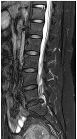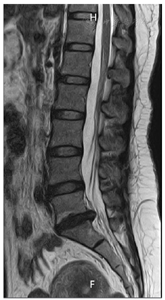 根据症状体征等临床表现,结合腰椎MRI结果,诊断腰椎间盘突出症(LDH)并坐骨神经痛。
