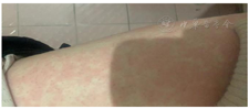 患者,女性,30岁,主因"间断发热伴皮疹1个月余"于2022年3月30日收入院。患者1个月余前受凉后出现发热,伴畏寒寒战,体温最高39.9℃,伴头痛、咽痛、周身酸痛无力,无咳嗽、气短,有恶心、呕吐,口服"感康、布洛芬"后无缓解,并出现周身散在红色皮疹,无瘙痒(图1)。