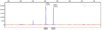 (1)PHOX2B基因片段分析:受检者PHOX2B基因(GCN)n重复次数为16和20次,为正常型。