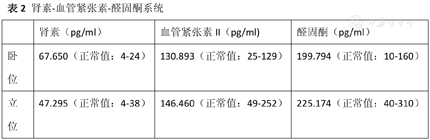 肾素-血管紧张素-醛固酮系统:肾素偏高,血管紧张素II及醛固酮正常(表2)。