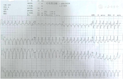 患者,女性,48岁,9个月余前情绪激动后出现心悸胸闷,无明显胸痛,无头晕头痛,无黑朦晕厥,无呼吸困难,持续约1 h未见好转,遂于当地医院就诊,查心电图提示:室性心动过速,随后自行转为窦性心律,未用药。3个月前再次发生心悸不适,当地医院心电图提示室性心动过速,持续约1 h,休息后自行恢复为窦律,无伴黑朦、晕厥。本次入院前1 d,患者无明显诱因下再次出现心悸胸闷,无伴胸痛,无黑朦晕厥,持续约2 h未见好转,再次于当地医院就诊,查心电图示:室性心动过速、ST-T改变,予可达龙150 mg静脉推注后转为窦性心律,推药期间患者出现短暂意识丧失,持续约2 min后恢复意识,无伴大小便失禁,恢复意识后自觉心悸好转。否认家族遗传性及聚集性疾病史;否认家族成员早发猝死病史。