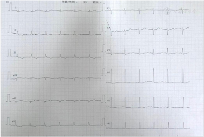 (1)血常规:白细胞4.9×109/L、中性粒细胞占比0.551、血红蛋白125 g/L、血小板169×109/L。(2)生化指标:空腹血糖4.53 mmol/L、丙氨酸转氨酶22 IU/L、天冬氨酸转氨酶25 IU/L、白蛋白39 g/L、尿素氮6.0 mmol/L、肌酐64 μmol/L、尿酸246 μmol/L、钠138 mmol/L、钾4.1 mmol/L、钙2.15 mmol/L、磷1.07 mmol/L。(3)血脂:甘油三酯1.07 mmol/L、胆固醇4.27 mmol/L、高密度脂蛋白1.79 mmol/L、低密度脂蛋白2.24 mmol/L。(4)心肌酶谱:乳酸脱氢酶122 IU/L、肌酸激酶65 IU/L、肌酸激酶同工酶2.4 ng/ml、肌红蛋白24.8 ng/ml、肌钙蛋白0.49 ng/ml↑。(5)DIC:APTT 32.9 s、PT 11.3 s、INR 0.96、TT 18.30 s、Fg 1.8 g/L、纤维蛋白降解产物2.2 mg/L、D-二聚体0.17 mg/L。(6)NT-proBNP:563.4 pg/ml↑。(7)炎症指标:C反应蛋白2.9 mg/L。(8)甲状腺功能、自身免疫指标未见明显异常。