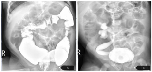 患儿6月龄男婴,以发热2 d伴腹胀2022年、1月、8日首次就诊外院,诊断脓毒性休克、严重脓毒症、先天性巨结肠可能住院治疗13天,仍反复有腹胀,无再发热后出院。
