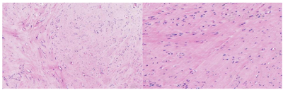 超声引导下穿刺活检,病理报告:索形细胞肿瘤,细胞形态温和,未见核分裂像及坏死,综合免疫组化考虑子宫平滑肌瘤。