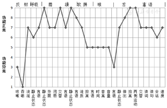 生命体征平稳。精神欠佳,表情淡漠,反应迟缓,鼻饲饮食。肺部听诊:双下肺可闻散在湿啰音及痰鸣音,右踝关节跖屈内翻畸形,肿胀疼痛。高级皮层功能:时间、地点、人物定向力差,近远期记忆力减退,计算力粗测正常,自发语少,问答对题,命名、复述、阅读可,书写差。颅神经:眼球活动及瞬目减少,水平及垂直眼震(+);口面唇舌活动不充分,口腔内痰液附着,吞咽及咳嗽反射延迟并减弱,喉上抬幅度小;构音清晰度低,音量小,声音嘶哑。改良饮水试验:3 ml,有咳嗽,伴憋气,吞咽次数:1次;时间:2 s。结果:3,b。