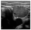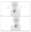 影像学检查:甲状旁腺超声:右侧甲状旁腺区见数枚低回声结节(较大者29 mm×18 mm),边界清晰,形态规则,内见条状血流信号(图1);左侧甲状旁腺区见数枚低回声结节(较大者37 mm×25 mm),边界清晰,形态规则,内见条状血流信号。甲状旁腺ECT示右侧甲状旁腺高功能腺瘤(图2)。肾上腺超声:左侧肾上腺见35 mm×29 mm低回声包块,边界清,形态规则,内部回声不规则,MR鞍区和垂体平扫示垂体瘤术后改变。髂关节正侧位片:双侧髂关节骨质疏松,骨密度;骨质疏松。胸部CT:两侧胸廓组成骨多发骨质改变,伴部分病理性骨折考虑,双肾结石,左肾萎缩、积水,左侧肾上腺肿块,胰头前方、胰头钩突下方见圆形低密度影。