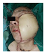 口腔-头颈MDT讨论后:先行术前新辅助化疗,然后全麻下行颊颌颈联合根治术+左部分眶内容物摘除术+右股前外侧游离皮瓣修复术+气管切开术,术后予以辅助化疗及放疗。