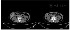 病例1:患者9 d前出现四肢乏力,查血压160/100 mmHg,予口服倍他乐克及针灸治疗后,症状缓解。5 d前体检时查B超于右肾下极皮质见一囊实性混合回声。病程中无尿频、尿急、尿痛、排尿困难,无咳嗽咳痰,无胸痛,无黄疸,无腹泻、腹胀,无进行性消瘦,饮食、睡眠良好,大小便正常。病例2:患者1周前体检,B超提示右肾下极见大小约29 mm×27 mm低回声团,边界尚清晰,其余未见明显异常。患者无发热咳嗽,无心慌胸闷,无头晕乏力,无腰部酸痛。病程中患者食欲可,睡眠可,大小便如常,体质量无明显变化。